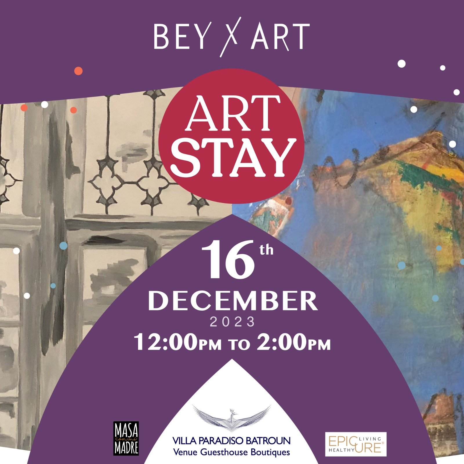 Lebanese artists. Engage with the artists, enjoy bites by Epicure and